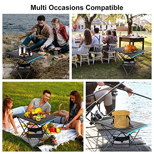 - ADDITIONAL MESH STORAGE COMPARTMENT: Innovative hanging storage mesh can be assembled underneath the camping table to provide more space and hold more stuffs for you. It’s a great to put phones, speakers, books, magazines, flashlights or other objects when you are camping or cooking.