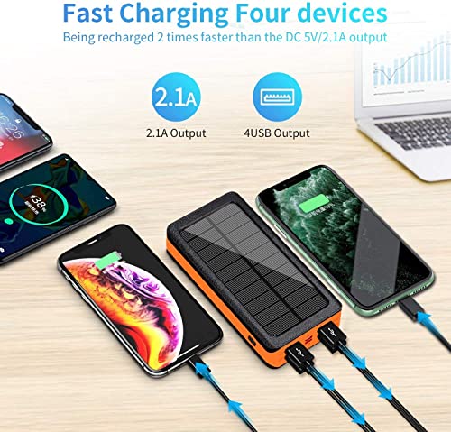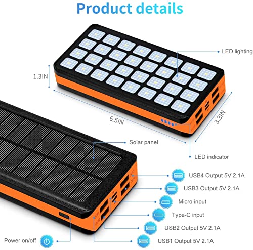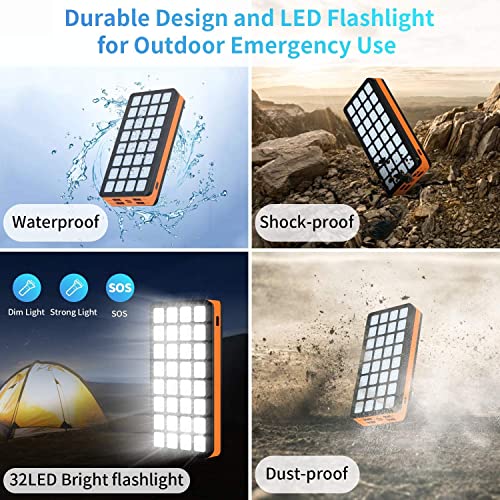 Power Bank 30000mAh Solar Charger Fast Charging Portable Charger with 32 LEDs Flashlight 4 Output Ports & 2 Input Ports Battery Pack for Camping Hiking Trip Home Emergencie