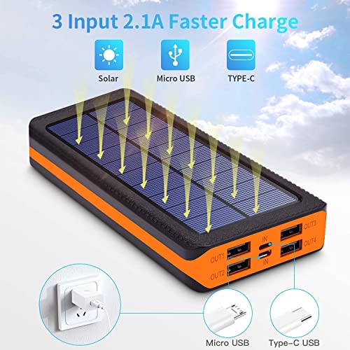 - The Solar Battery Charger Is Equipped With 4 Output Ports And 2 Input Ports, Including 1* Type C Input Port And 1* Micro Input Port. The Solar Phone Charger Uk Can Support Charging 4 Devices At The Same Time. Compatible With Most Of Smartphones, Tablets, Earphones, Cameras And Other Devices In The Market.